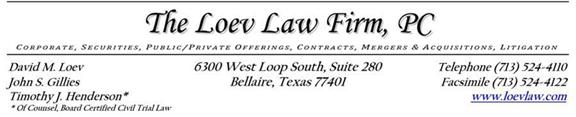 This opinion is expressly limited in scope to the Warrants and Shares enumerated herein which are to be expressly covered by the referenced Registration Statement. Without limiting the generality of the foregoing, we neither express nor imply any opinion regarding the contents of the Registration Statement, other than as expressly stated above with respect to the Warrants and Shares.