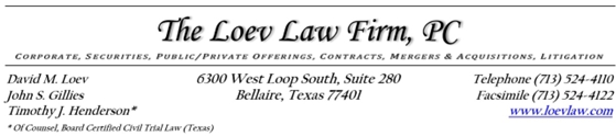 This opinion is expressly limited in scope to the Shares enumerated herein which are to be expressly covered by the referenced Registration Statement. Without limiting the generality of the foregoing, we neither express nor imply any opinion regarding the contents of the Registration Statement, other than as expressly stated above with respect to the Shares.