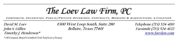 With your permission, we have made and relied upon the following assumptions, without any independent investigation or inquiry by us, and our opinion expressed below is subject to, and limited and qualified by the effect of, such assumptions: (1) all corporate records furnished to us by the Company are accurate and complete; (2) the Registration Statement to be filed by the Company with the Commission will be identical to the form of the document that we have reviewed; (3) all statements as to factual matters that are contained in the Registration Statement (including the exhibits to the Registration Statement) are accurate and complete; and (4) in connection with each issuance of any Warrant Shares, the Company will duly execute and deliver a stock certificate evidencing the Warrant Shares or, with respect to any Warrant Shares issued on an uncertificated basis, the Company will comply with applicable laws regarding the documentation of uncertificated securities.