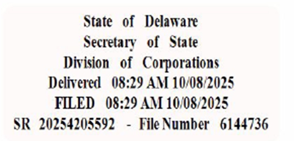 IN WITNESS WHEREOF, ETHZilla Corporation has caused this certificate to be signed by McAndrew Rudisill, its Chief Executive Officer, this 7th day of October, 2025.