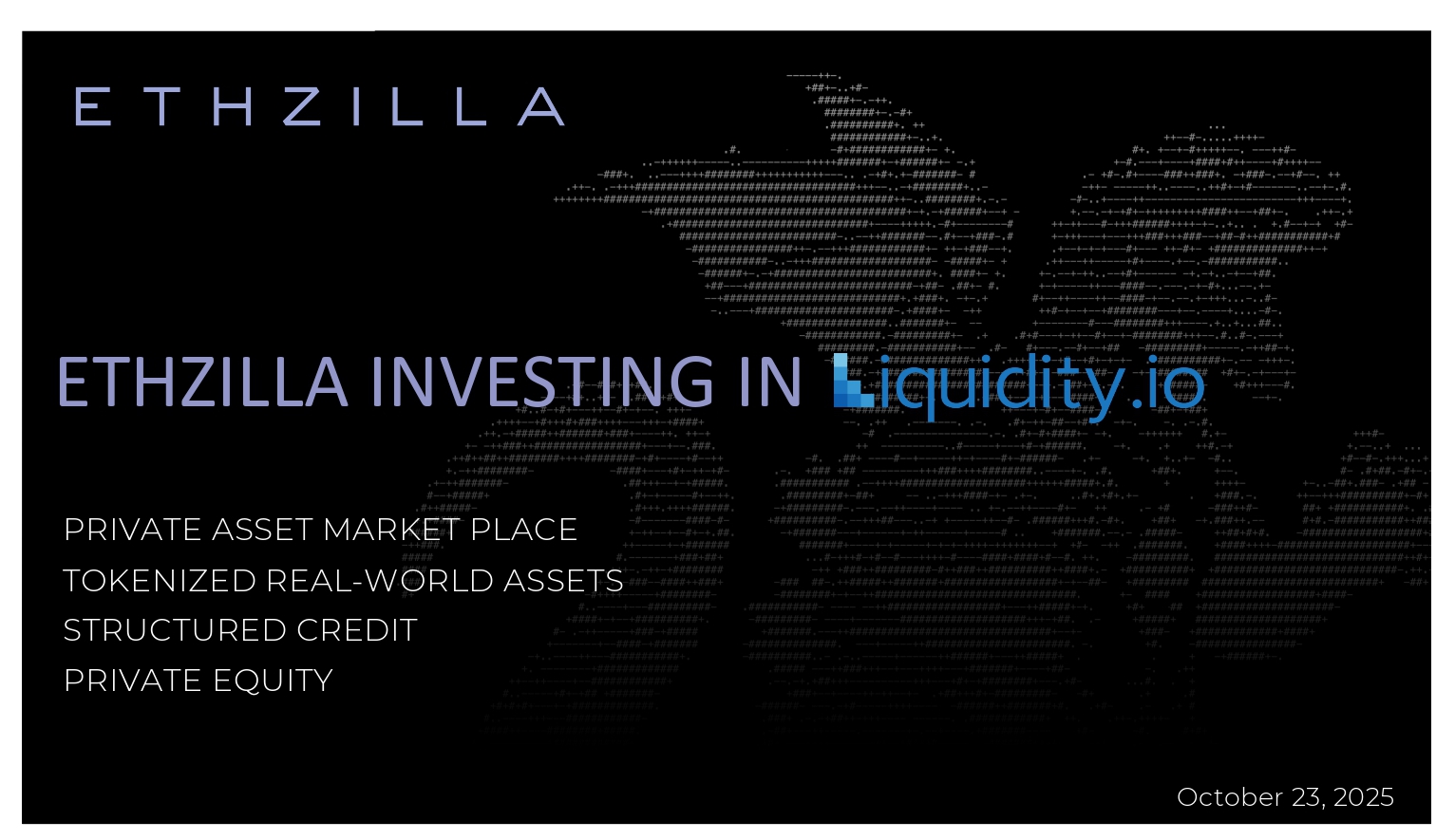 ETHZILLA INVESTING IN PRIVATE ASSET MARKET PLACE TOKENIZED REAL - WORLD ASSETS STRUCTURED CREDIT PRIVATE EQUITY October 23, 2025